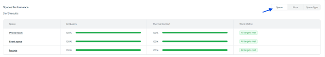 You can also change how the data is grouped by switching between space, floor, or space type.