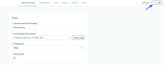 From the Building Page, click the pencil icon in the top right corner. This will open the “+ Add” page.
