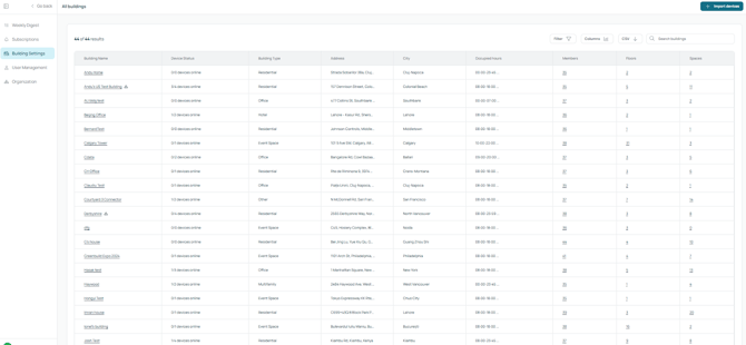 Use this page when you need to update building details, manage floors, spaces, or bulk uploading devices.