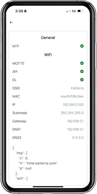 After using the Kaiterra Configuration App to configure your device to your network of choice, reconnect to the Sensedge Mini by power cycling the device and reconnecting to its Wireless Access Point.