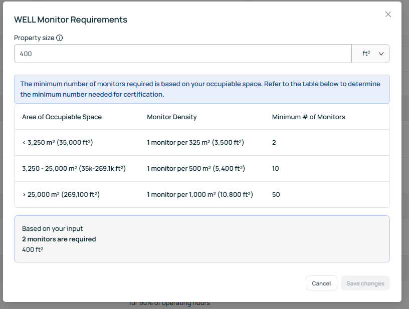 The Compliance Tool also shows the number of devices required for your building based on its size.