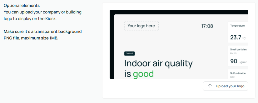 You can upload your own logo to display on the Kiosk.