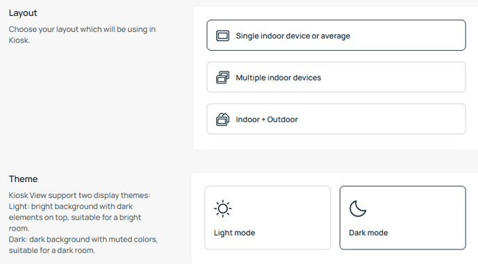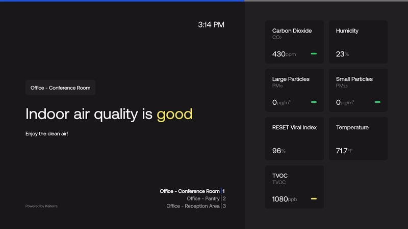 You can choose which parameters appear on the Kiosk, such as air quality or thermal metrics.